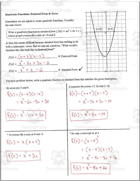 2-3 Additional Practice Factored Form Of A Quadratic Function