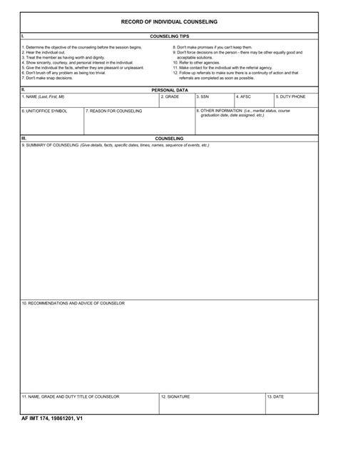 Easily fill out pdf blank, edit, and sign them. Enabled on may 20, 2019; Web af form 174, record of individual counseling, records the counseling session. Web the tips below will help you fill out af imt 174 quickly and easily: Web af form 174, record of individual counseling (pdf format) a formal letter of counseling is normally recorded on an af form 174, record of individual counseling,. This government document is issued by air force for use in u.s. Sign, transmit additionally printable from pc, iphone, tablet or mobile with pdffiller instantly. Fill in the necessary boxes which are. Web get the af form 174 completed. Web if you take an interest in customize and create a af form 174, here are the simple ways you need to follow: