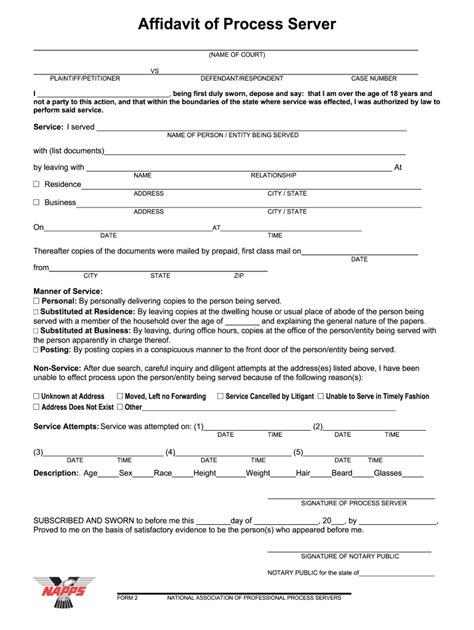 NAPPS Affidavit of Process Server Fill and Sign Printable Template