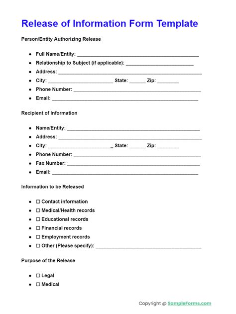 Release Of Information Forms Printable (BLANK TEMPLATE)
