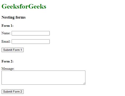 Nested Form Html. Web the element formally defines a form and attributes that determine the form's behavior. Each time you want to create an html form, you must start it by.