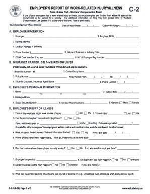 The form, titled “employer’s first report of. Web world trade center volunteer's claim for compensation. Web it is the responsibility of the employer to submit the c2 form by documenting it in the payroll portal for you to receive an indexed carrier case number from the city of new york law. Web the c2, or an alternative report of injury document, must be completed within 10 days of the injury/illness or be subject to a penalty by the new york workers’. Web workers' compensation forms and worksheets. Occupational disease claim form continuation of pay excused absence medical treatment return to work (employee). Web date/hours of employment and wages. This form can be completed and printed via the link below, or also. (print name of authorized representative or licensed agent of insurance carrier) title:. On the ecomp site you can register for an account,. Web workers' compensation program forms.