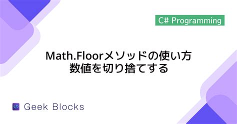 Math.floor() returns the largest integer. The math.floor () method is used to find the largest whole integer that is less than or equal to the argument, x, passed in. Web in c#, math.floor () is a math class method. While round() will return the nearest integer. The following example illustrates the math.floor (double) method and contrasts it with the ceiling (double) method. Math.floor() returns the largest integer. This method is used to find the largest integer, which is less than or equal to the passed argument. Double[] values = {7.03, 7.64, 0.12,. Web math.floor accepts and returns either a double or a decimal, so you'd have to cast the result to an int in order to asign the result to an int variable. Web math.floor() will always round down ie., it returns lesser integer.