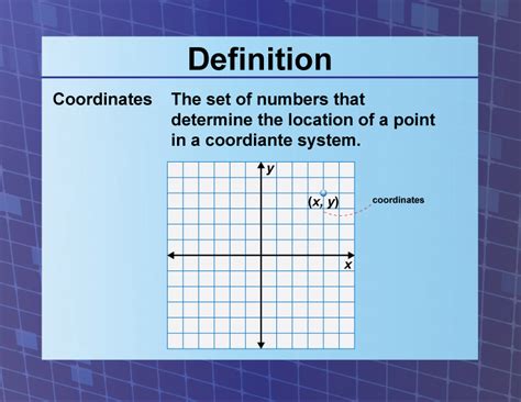 Coordinates Math Definition. Web a set of values that show an exact position. The first number shows the distance along,.