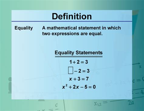 Equality Definition In Math. Web the state of being equal. 60 seconds = 1 minute is an equality.