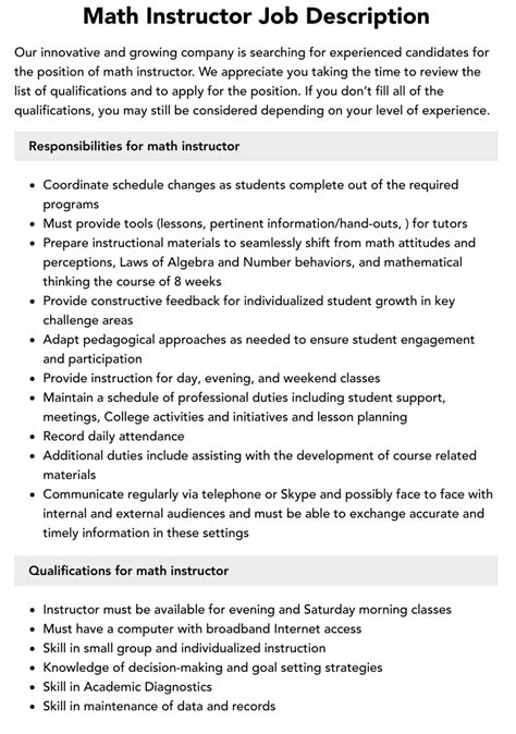Adjunct Math Instructor Resume Samples QwikResume