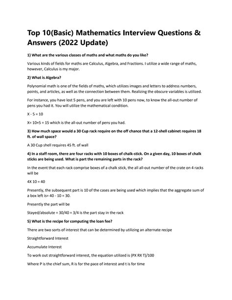 Web here are mathematics interview questions and answers for freshers as well as experienced candidates to get their dream job. Web top 20 mathematics interview questions & answers 1. What types of math are you familiar with? How do you improve your math skills? Are your candidates constantly improving their math skills? 1) what are the different. Web math interview questions allow employers to assess your ability to: Web 20 math interview questions (with example answers) 1. These questions test your understanding and application of. Web 4 general math skills interview questions and answers 1.