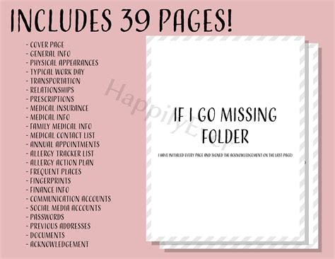 If I Go Missing Folder Printable. Web how to make an “if i go missing folder” just in case. Having all your information prepared in one place can ensure that the.