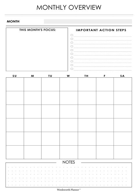 Free Monthly Calendar Overview Printable & Blank Version Study