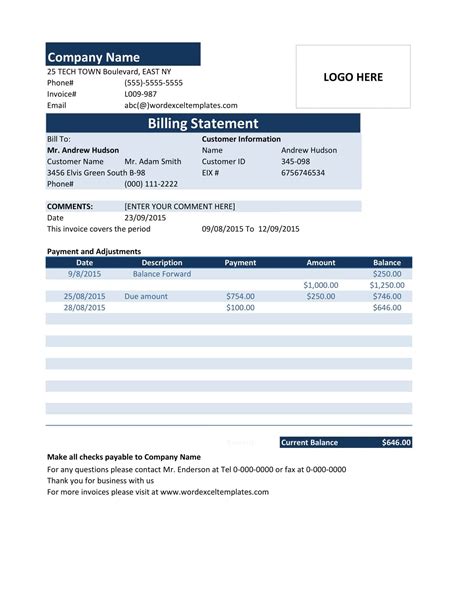 Printable Billing Statement. [customer name] [stress address] [city, st zip] [phone] [your company name]. Web statements statements click any template to see a larger version and download it.