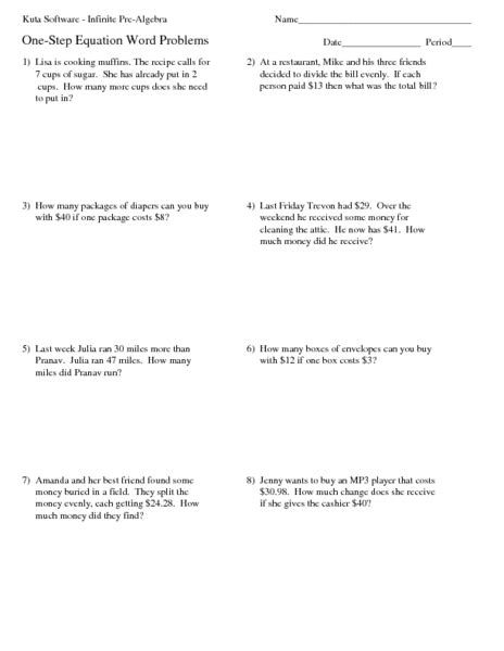 1 Step Equation Word Problems. This one step word problems worksheet will produce ten problems per. This page encompasses a compilation of printable worksheets on.