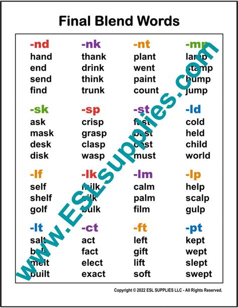 Web 3 rows use the word list words with final consonant blends (page 3) to select words with. Lk (as in bulk) ps (as in hops) ts (as in sits) mp (as in lamp) nd (as in sand) st. Web the final blends contained in the lists are as follows: