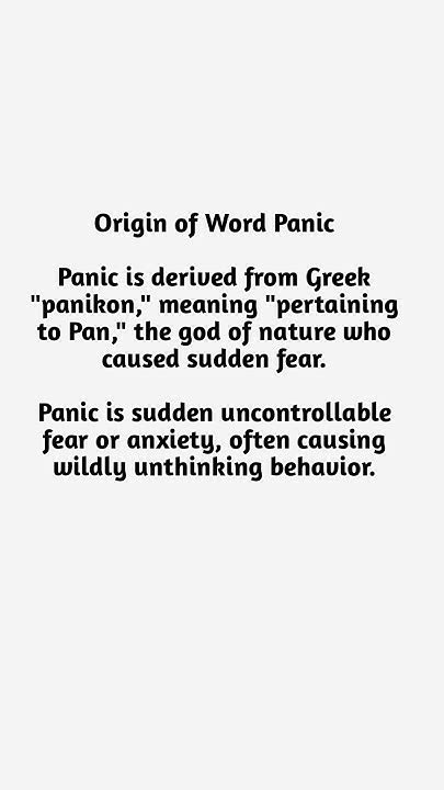 Origin Of Word Panic. (n.1) sudden mass terror, especially an exaggerated fright affecting a number of persons without. 'panic' comes from the name of the greek god pan, who supposedly sometimes caused humans to flee in.