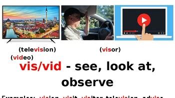 Root Word Vis. These latin roots are the word origin of a good number of english vocabulary words, including visual,. The latin root words vis and its variant vid both mean “see.”.