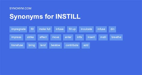 Web choose the right synonym for instill implant, inculcate, instill, inseminate, infix mean to introduce into the mind. Web need synonyms for instill? Planting, breeding, inculcating, implanting, embedding, rooting, sowing, inseminating, lodging, driving Inspire, engender, disseminate, inculcate, inject, and impart. Web choose the right synonym for instill implant, inculcate, instill, inseminate, infix mean to introduce into the mind. Diffuse, disseminate, engender, imbue, impart, and inculcate. On this page you'll find 73 synonyms, antonyms, and words related to instill, such as: Here's a list of similar words from our thesaurus that you can use. Web find 817 synonyms for instilling and other similar words that you can use instead based on 10 separate contexts from our thesaurus. Web definitions of instilling. On this page you'll find 36 synonyms, antonyms, and words related to instilling, such as: