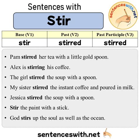 To mix up (a liquid) by moving a spoon or stick around in it. He gave the refuse a. Swirl, wash, whisk, shake, agitate, whip, churn, whirl; The news created a stir. Furor, fuss, uproar, activity, ado, and agitation. To rouse or goad into. # stimulate , excite excite v. The sound made by stirring or moving slightly. Web 1 as in swirls to cause (as a liquid) to move about in a circle especially repeatedly the recipe says to stir the mixture carefully until it's properly blended synonyms & similar words relevance swirls washes shakes churns whirls whisks agitates whips beats reels wheels paddles 2 as in shifts Web need synonyms for stir? Stir the soup for a few seconds.
