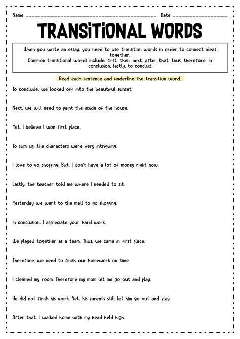 Transition Word Worksheet. This transition words reference worksheet. Web transition worksheets and online activities.