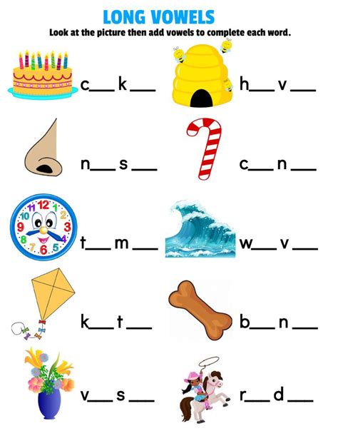 Long Vowel Sound Worksheet. This group of long vowel sounds worksheets includes one worksheet for each of the long vowel sounds a, e,. Free interactive exercises to practice online or download as pdf to print.